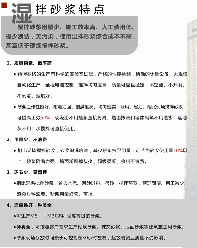 公司總投資5000多萬(wàn)元,占地3萬(wàn)平方米,擁有HZS-180德國(guó)進(jìn)口攪拌機(jī)自動(dòng)化混凝土生產(chǎn)線兩條,整個(gè)生產(chǎn)流程均為電腦化、自動(dòng)化、標(biāo)準(zhǔn)化,配套“三一重工”、“中聯(lián)重科”先進(jìn)的混凝土輸送設(shè)備8臺(tái),運(yùn)輸攪拌車30余臺(tái),具有年產(chǎn)混凝土80萬(wàn)方、濕拌砂漿30萬(wàn)噸的供貨能力。通過(guò)綠色升級(jí)改造,建成封閉料庫(kù)5000多平方米、生產(chǎn)車間800多平方米,加裝噴淋、隔音、收塵、砂石分離機(jī)等設(shè)施,達(dá)到了國(guó)家預(yù)拌混凝土綠色生產(chǎn)JGJ/T328-2014星級(jí)管理標(biāo)準(zhǔn)。